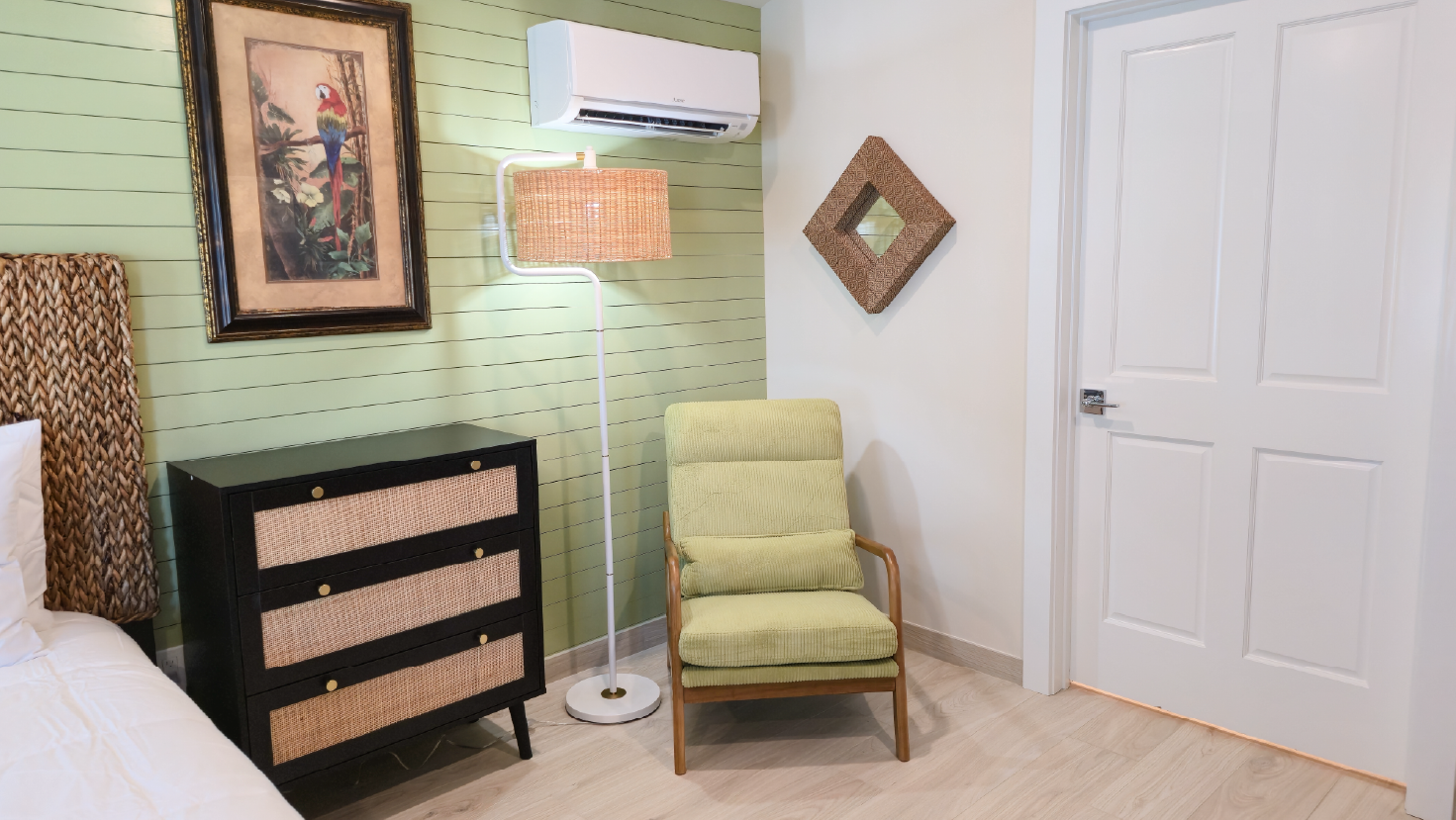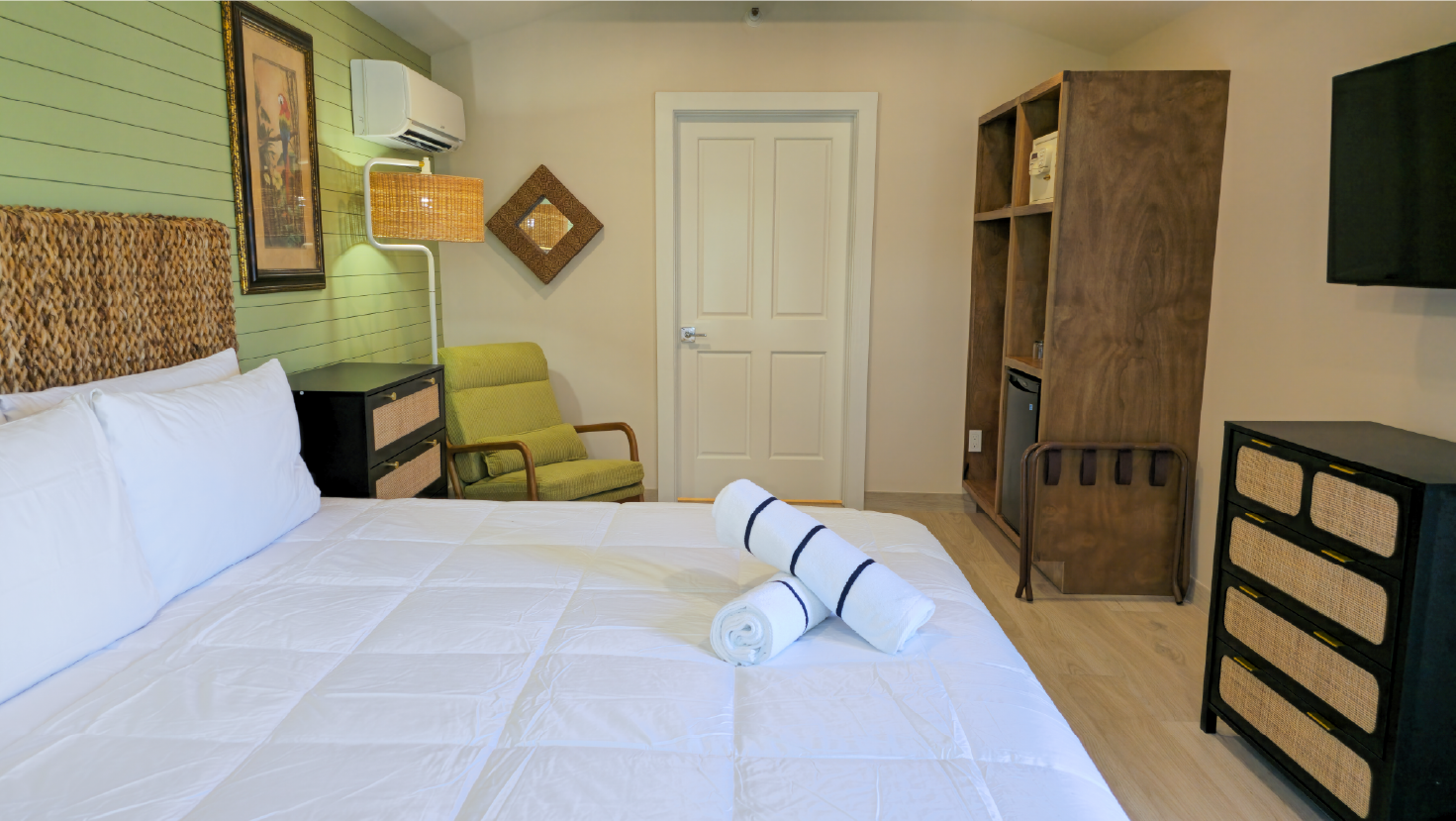 Room 43, approx 300 square feet, is located on the 2nd floor at the quiet rear of property offering serenity with a Picasso view of the Cabaret Catwalk and a Juliette balcony.
