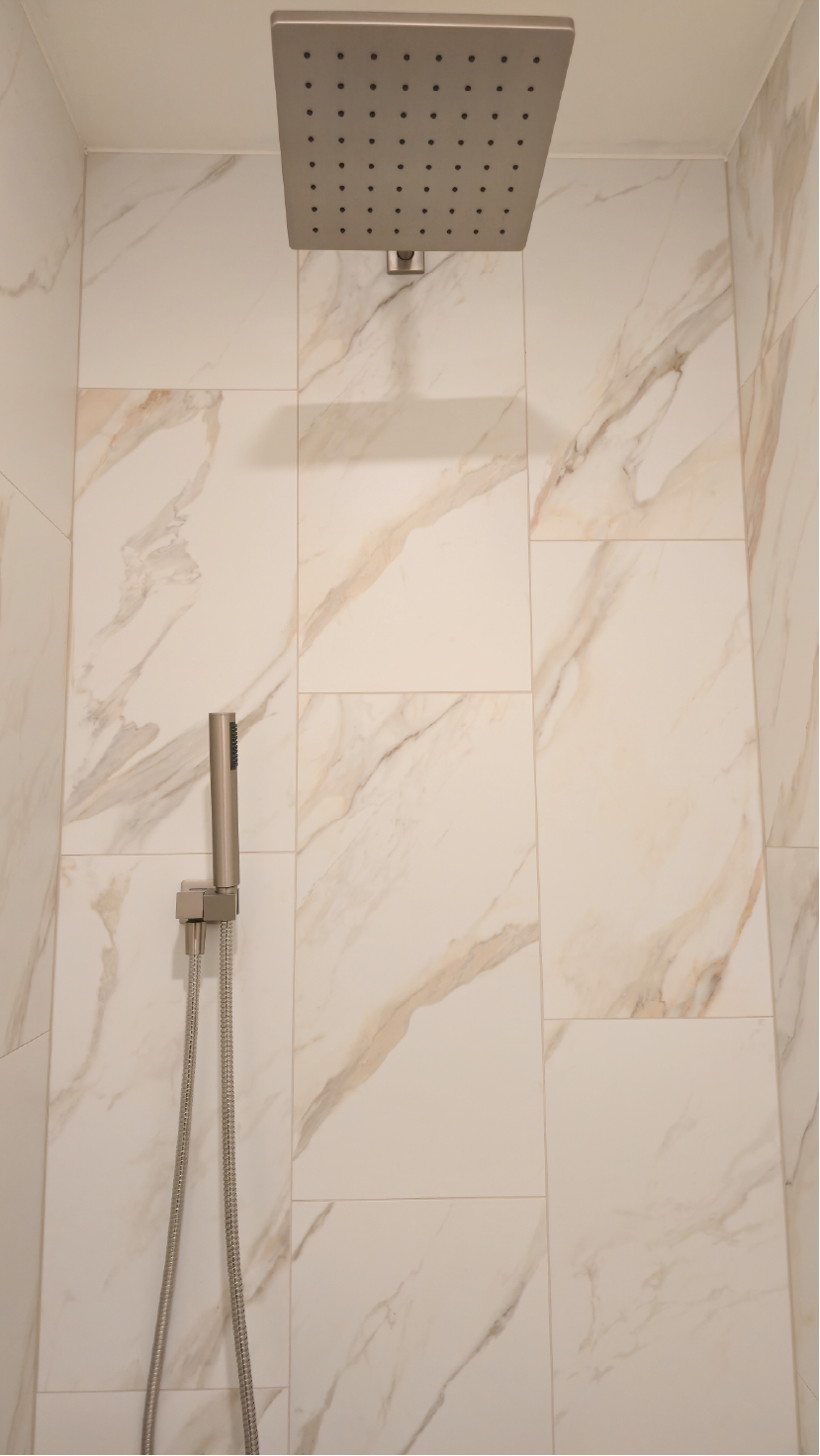 -Rain Shower with spray handle -Large Vanity mirror with steam reduce switch